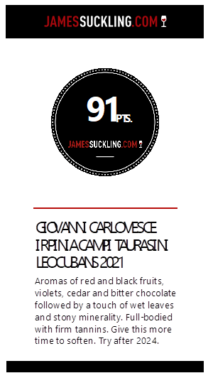 | Vesce Giovanni | Irpinia Campi Taurasini | Leo Cubans | 2020 | 93 | Rosso | |